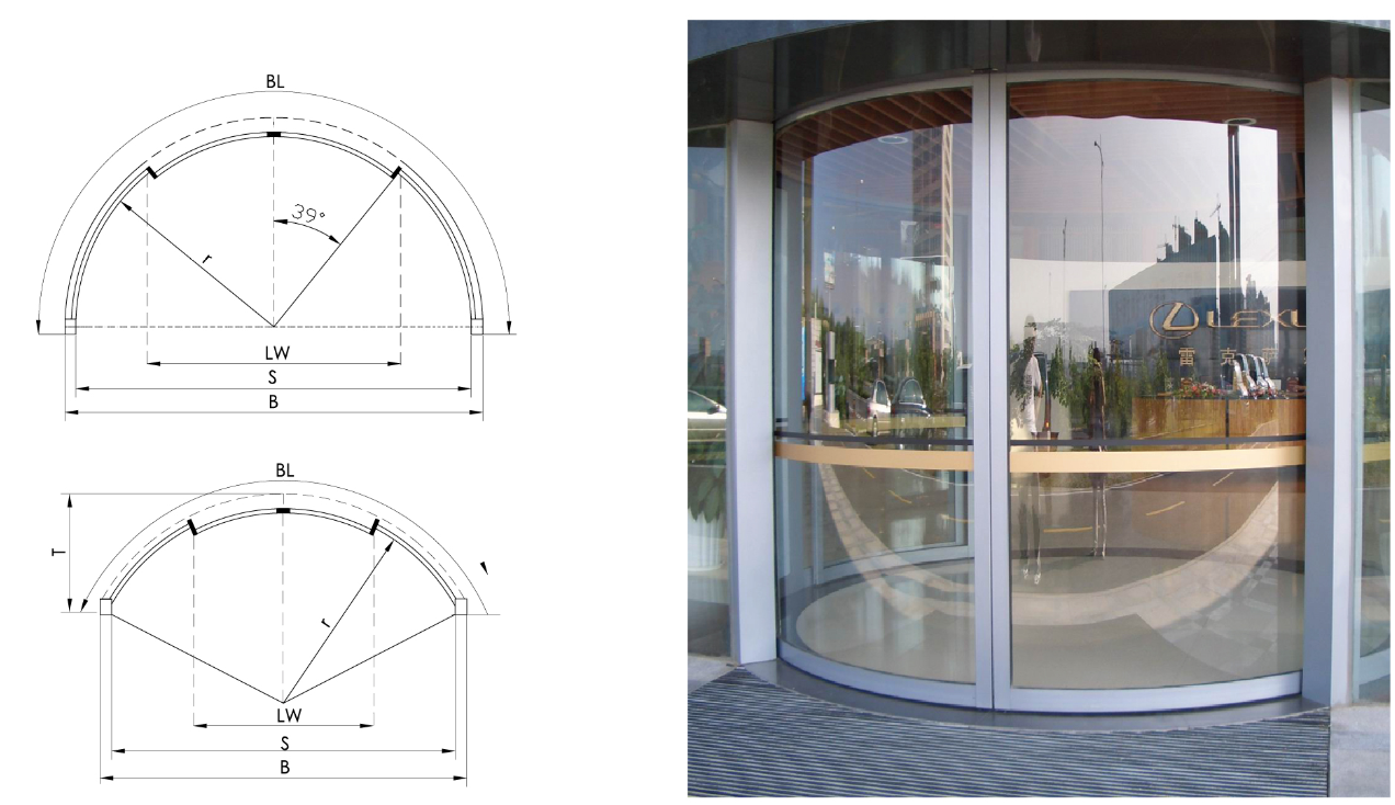 獨特而雅致的設計,滿足建築師在圓弧入口處的功能需求,可以根據現場條件設計成半圓、全圓、弧段自動門
